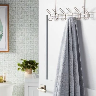 This Six Over-the-Door Hook from Threshold™ provides additional storage in your bedroom, bathroom, laundry room and more. Designed with six metal hooks, it makes a perfect accessory for hanging hats, clothing items, towels, robes and more. It’s powder-coated silver finish brings lasting style and matches easily with just about any decor.
