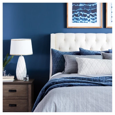 Add a slim and subtly detailed profile to any table with the Faceted Ceramic Large Lamp Base White from Threshold™. This white lamp base is covered with textured detail that adds interest to your space without being distracting. This base will go great with vintage or rustic decor and complements a variety of lampshades, whether you go with a pop or color or keep it simple.