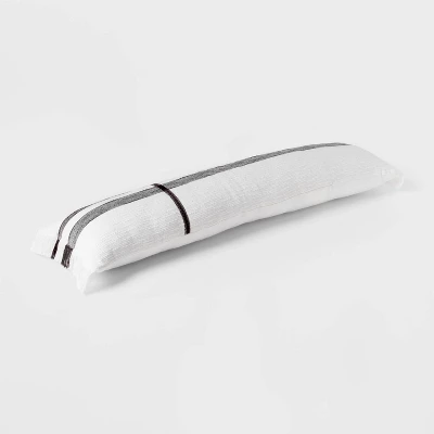 This Lumbar Modern Woven Plaid Decorative Throw Pillow from Threshold™ adds the perfect aesthetic for a cozy, chic home. This decorative pillow is designed with a minimal black woven plaid pattern on an off-white textured background and matching fringed trim on its sides for enhanced visual appeal. Featuring a 100% cotton exterior and a well-filled interior, the lumbar throw pillow adds the right amount of comfort and style anywhere you place it, be it on your sofa, chair or bench.