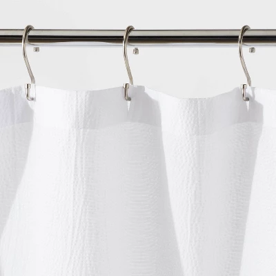 Lend modern appeal to your bath space with this Ombre Nautical Shower Curtain from Threshold™. Showcasing an ombre design in hues of blue with white stripes and white, this printed shower curtain brings contemporary charm to your bathroom space, while effortlessly blending with a variety of decor styles and color schemes. Made from a soft fabric blend, decorative shower curtain features a buttonhole top for easy installation and added convenience.